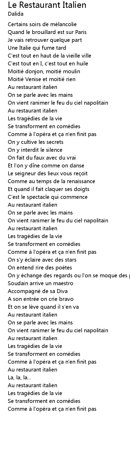 | 歌曲 | Le Restaurant Italien |