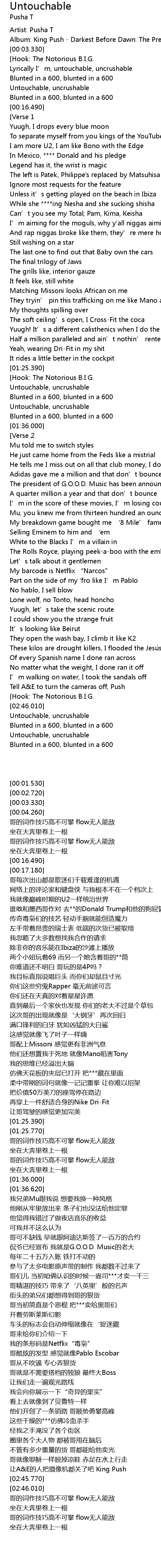 | [00:05.010] | Lyrically I' m, untouchable, uncrushable |