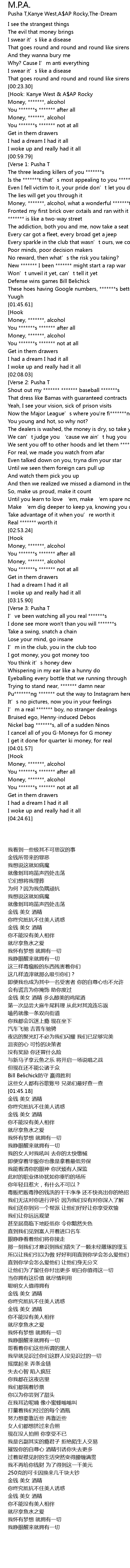 | [02:54.74] | Money, *******, alcohol |