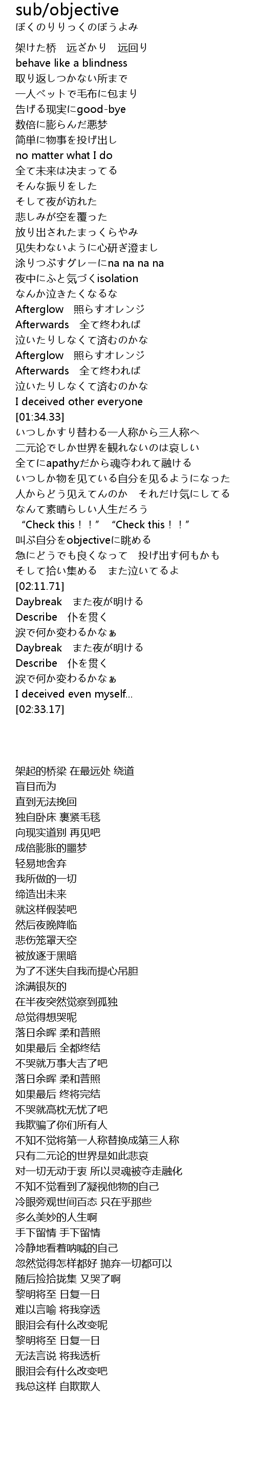 | [02:02.84] | 叫ぶ自分をobjectiveに眺める |