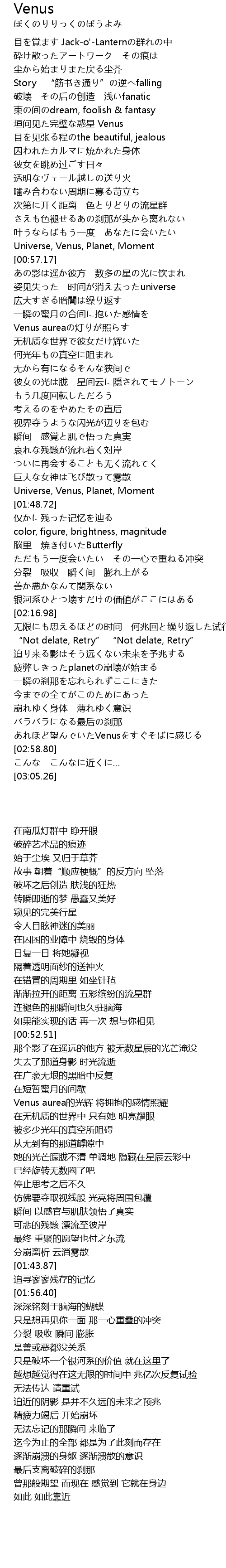 | [00:26.24] | 垣间见た完璧な惑星 Venus |