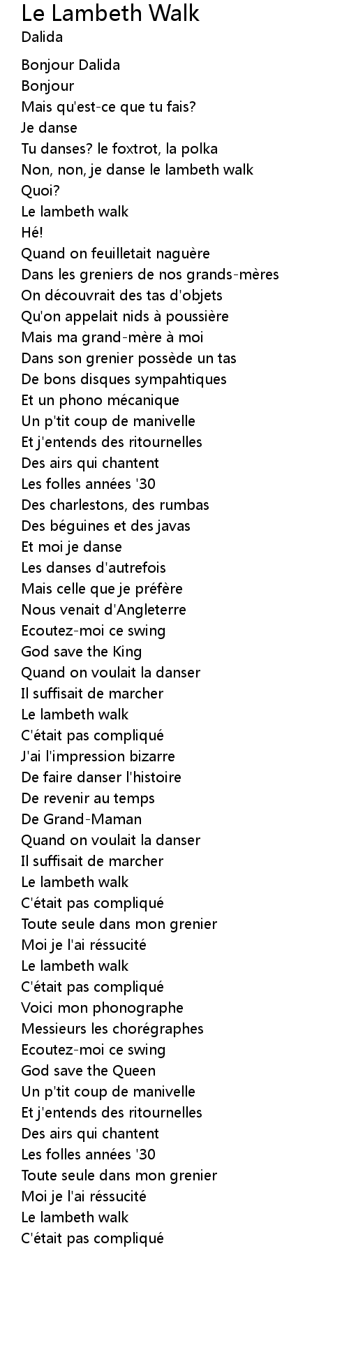 | Non, non, je danse le lambeth walk | |