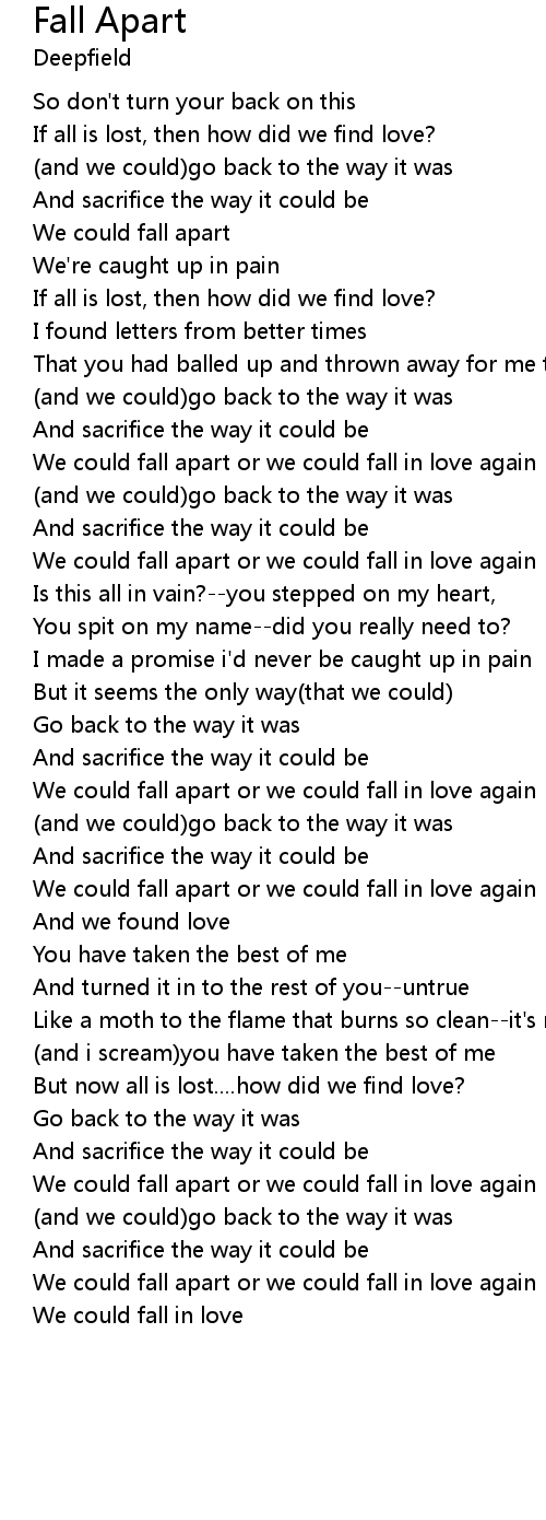 We could fall apart or we could fall in love again |