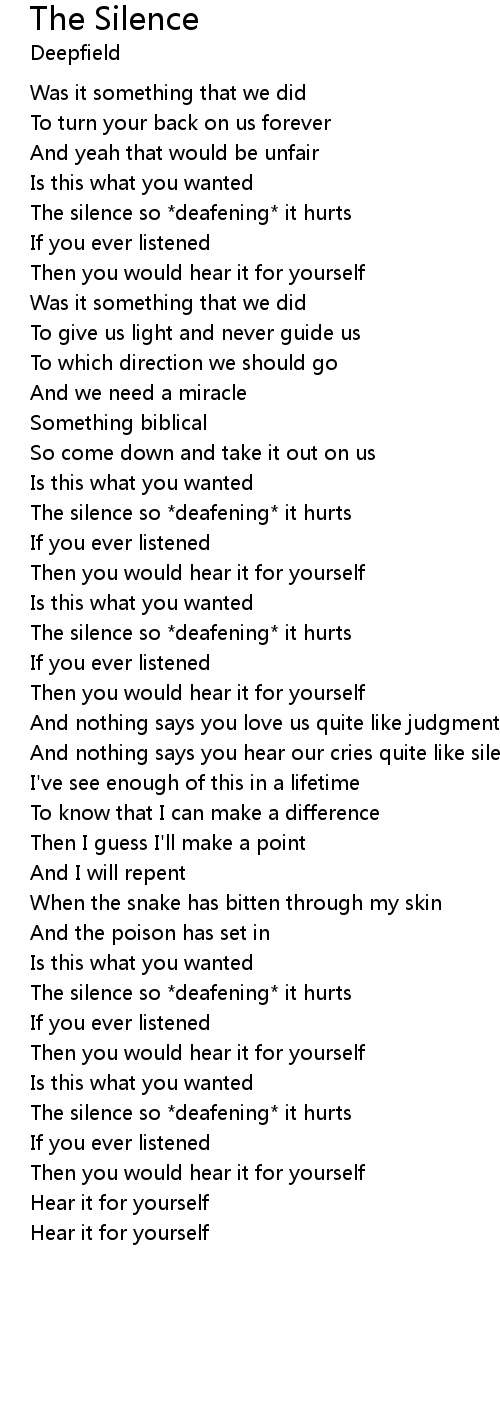 And nothing says you hear our cries quite like silence |