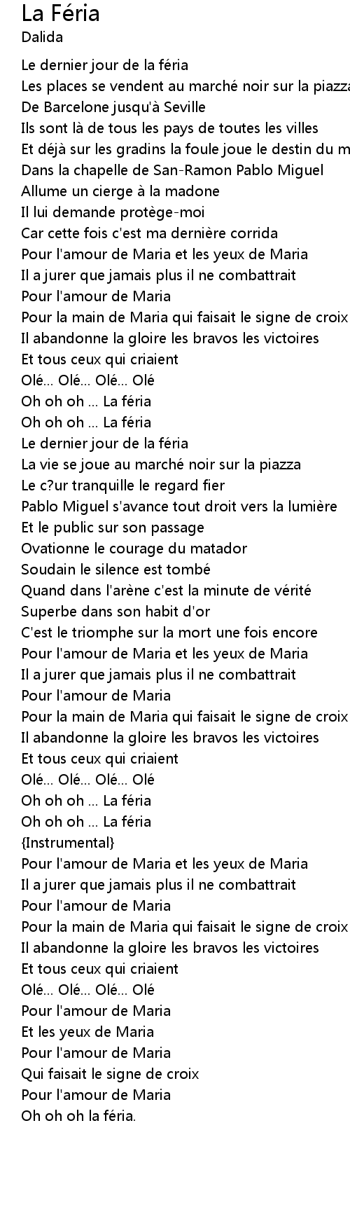 | Car cette fois c' est ma dernie re corrida | |