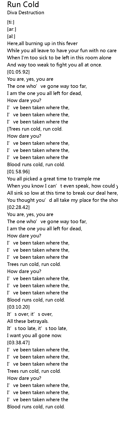 | [00:53.64] | When I'm too sick to be left in this room alone |