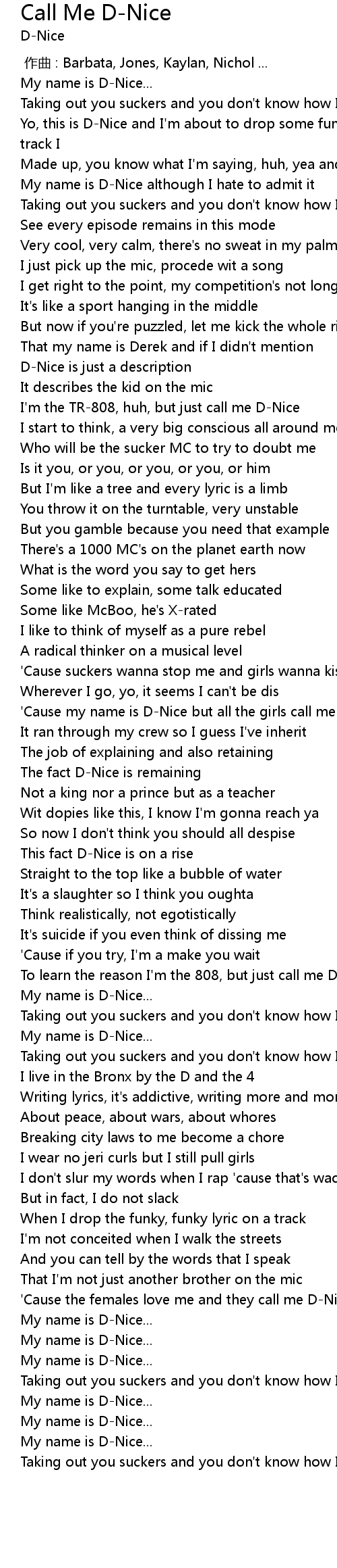 | [02:14.86] | To learn the reason I'm the 808, but just call me D-Nice |