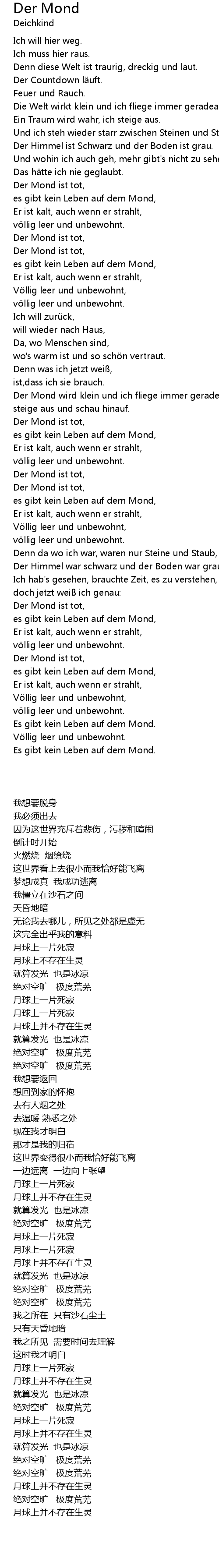 | [02:12.490] | Der Mond wird klein und ich fliege immer geradeaus, |