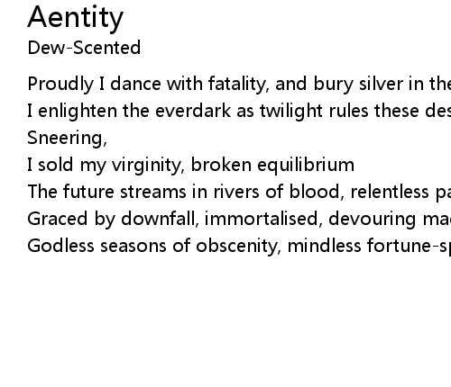 | Godless seasons of obscenity, mindless fortune-spell, cast upon our aentity |