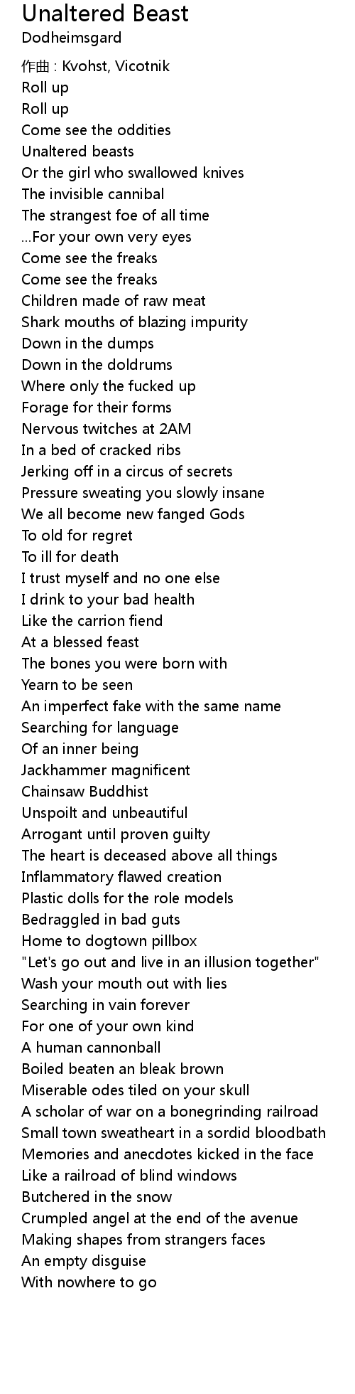 | 歌曲 | Unaltered Beast |