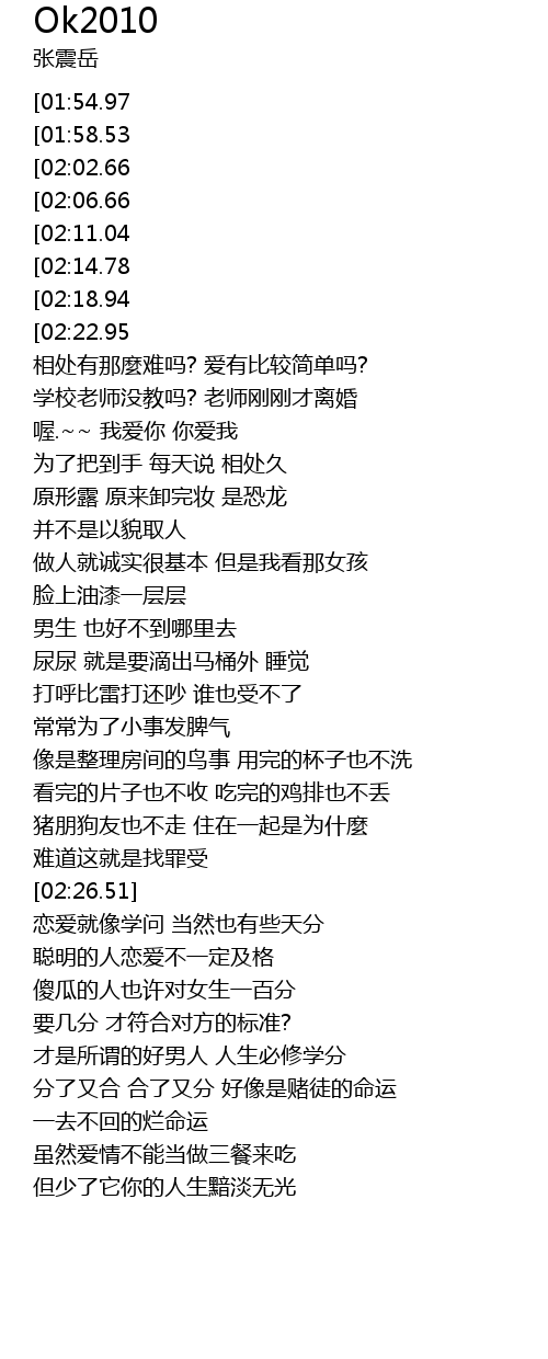 | [03:16.47][01:54.97][00:32.12] | 交了爱情的白卷必须要重考 |