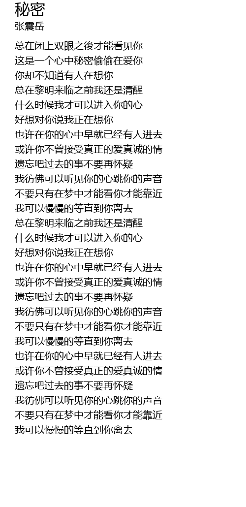| [00:22.900] | 这是一个心中秘密偷偷在爱你 |