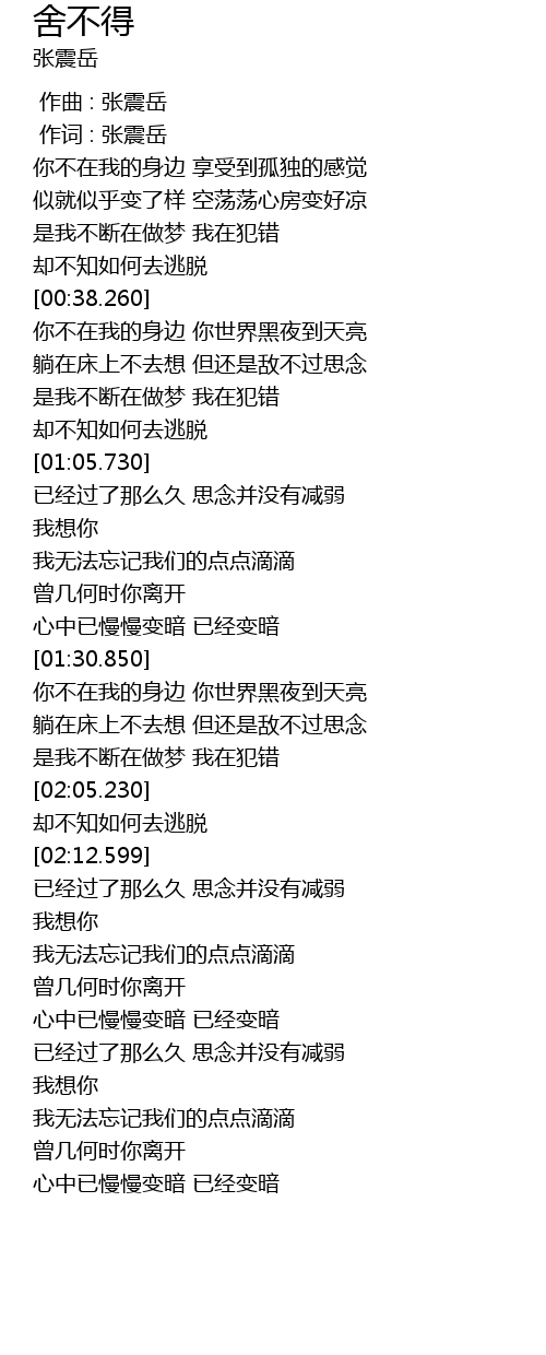 | [00:01.00] | zuò cí : zhāng zhèn yuè |