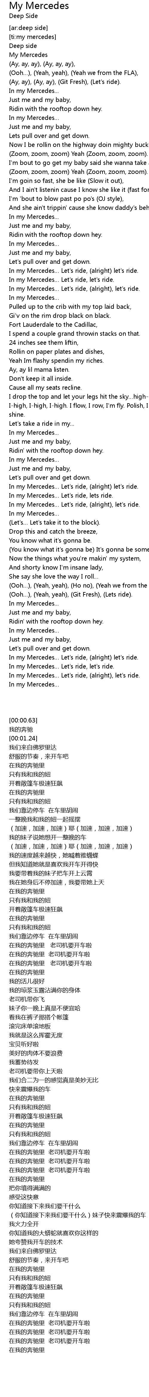| [03:20.25] | In my Mercedes Let' s ride, let' s ride. |