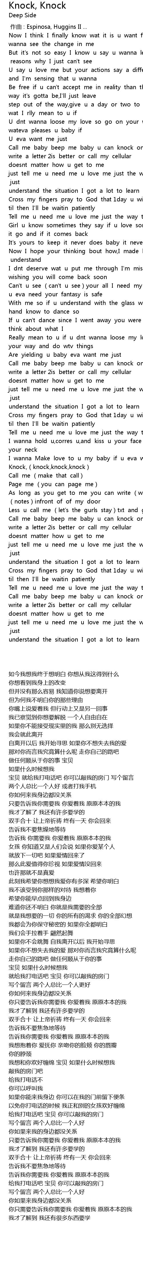 | [02:25.557] | Call me baby beep me baby u can knock on my door |