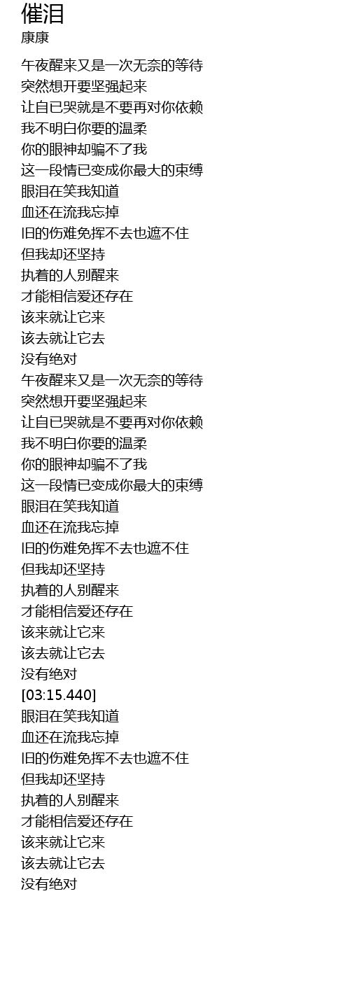 | [03:18.579] | 眼泪在笑我知道 |