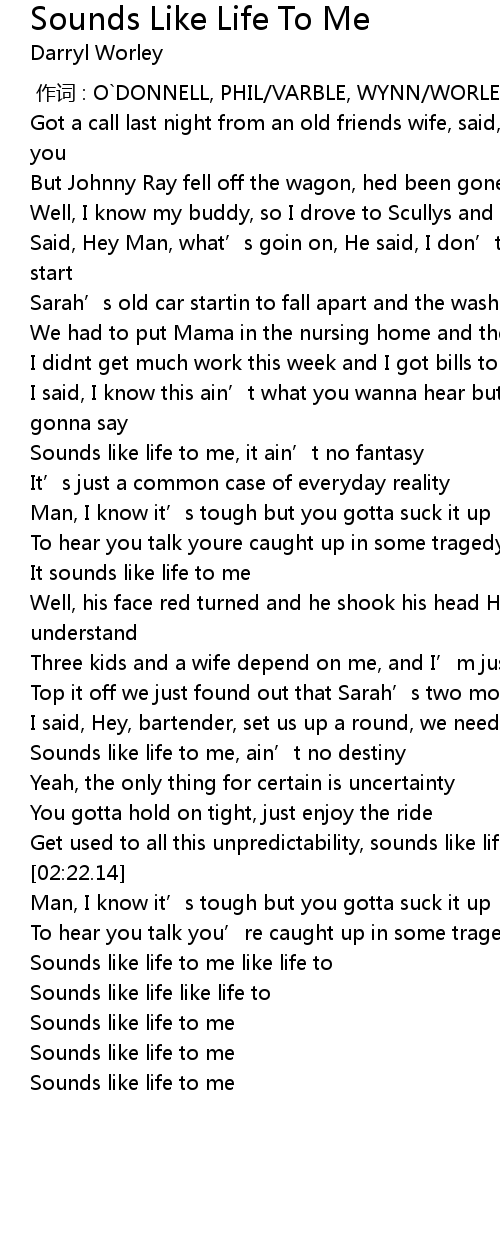 | [02:50.61] | Sounds like life like life to |