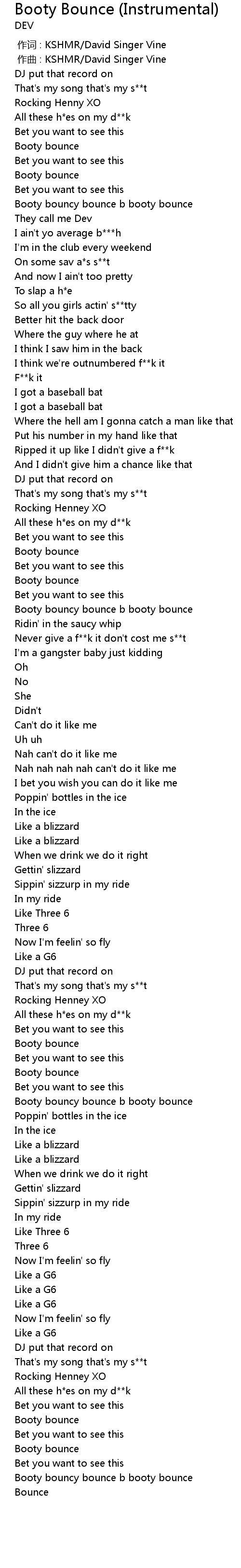 | [04:22.11] | Booty bouncy bounce b booty bounce |