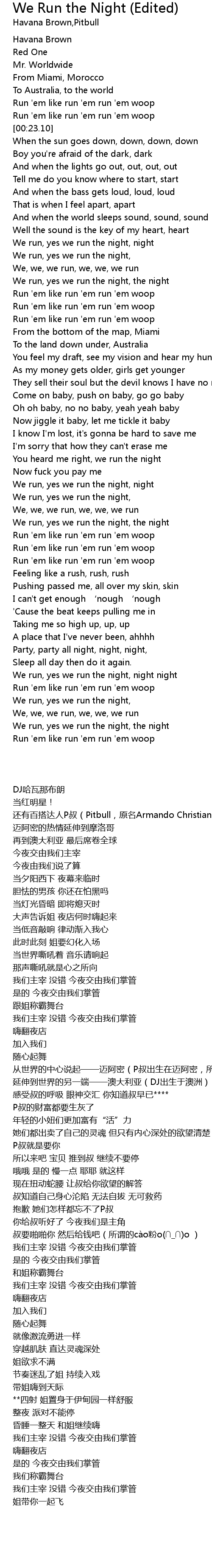 | 歌曲 | We Run the Night (Edited) |