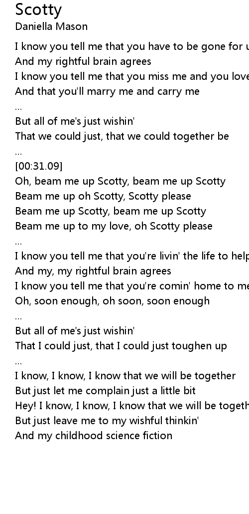 [00:41.61] Beam me up oh Scotty, Scotty please