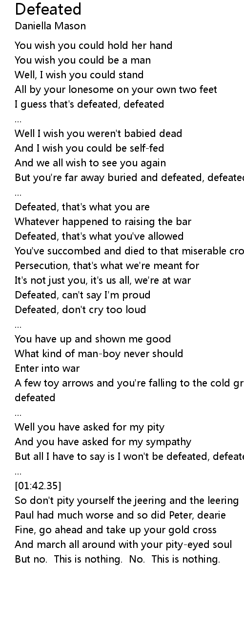 Defeated, don't cry too loud |
