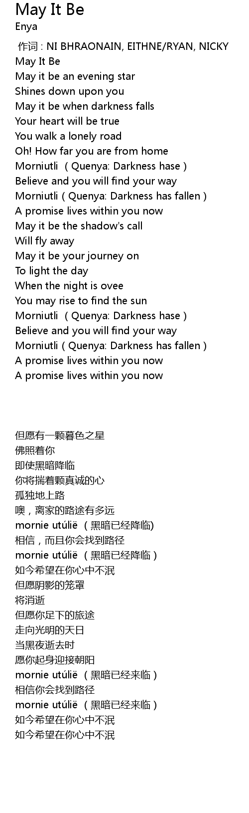 | [00:00.00] | May It Be |