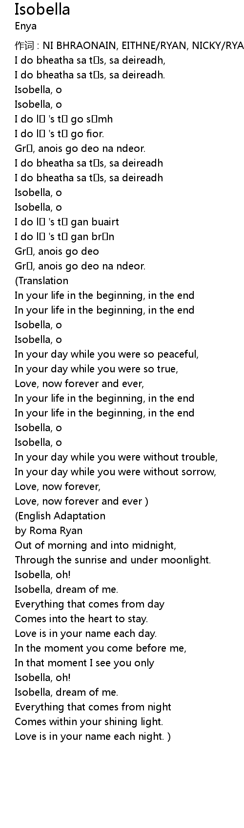 | 作词 : NI BHRAONAIN, EITHNE/RYAN, NICKY/RYAN, ROMA | |