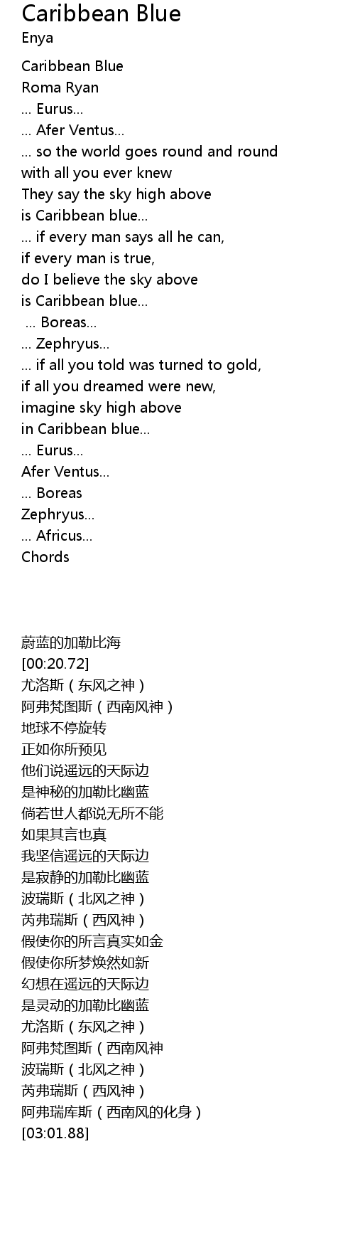 | [00:56.10] | 是神秘的加勒比幽蓝 |