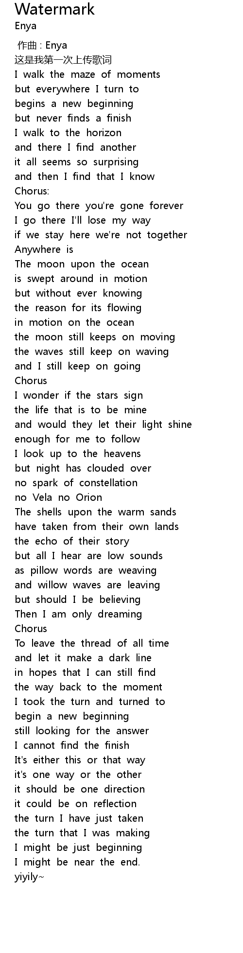 | [00:00.00] | zuò qǔ : Enya |