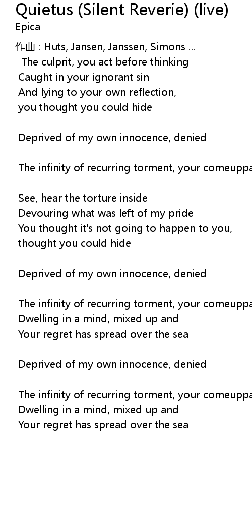 | 歌曲 | Quietus (Silent Reverie) (live) |