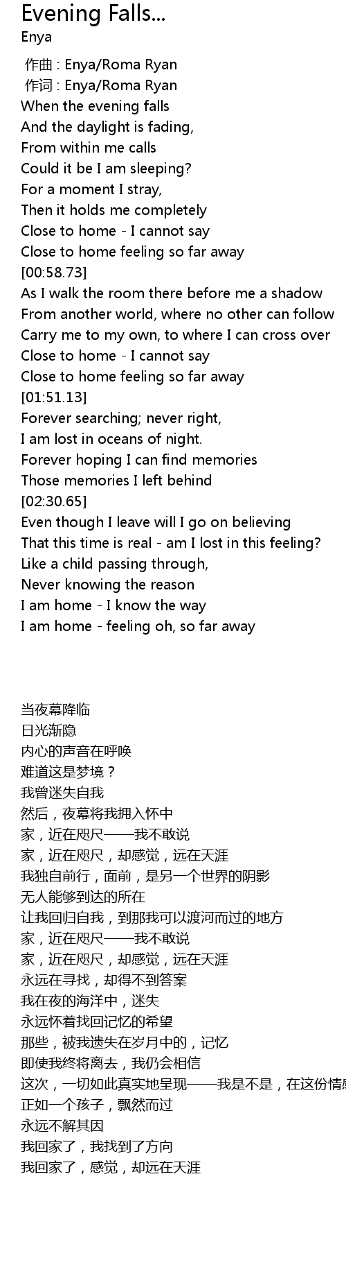| [00:06.47] | When the evening falls |