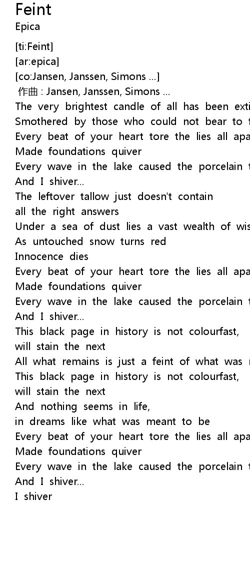 | [03:01.860] | All what remains is just a feint of what was meant to be |