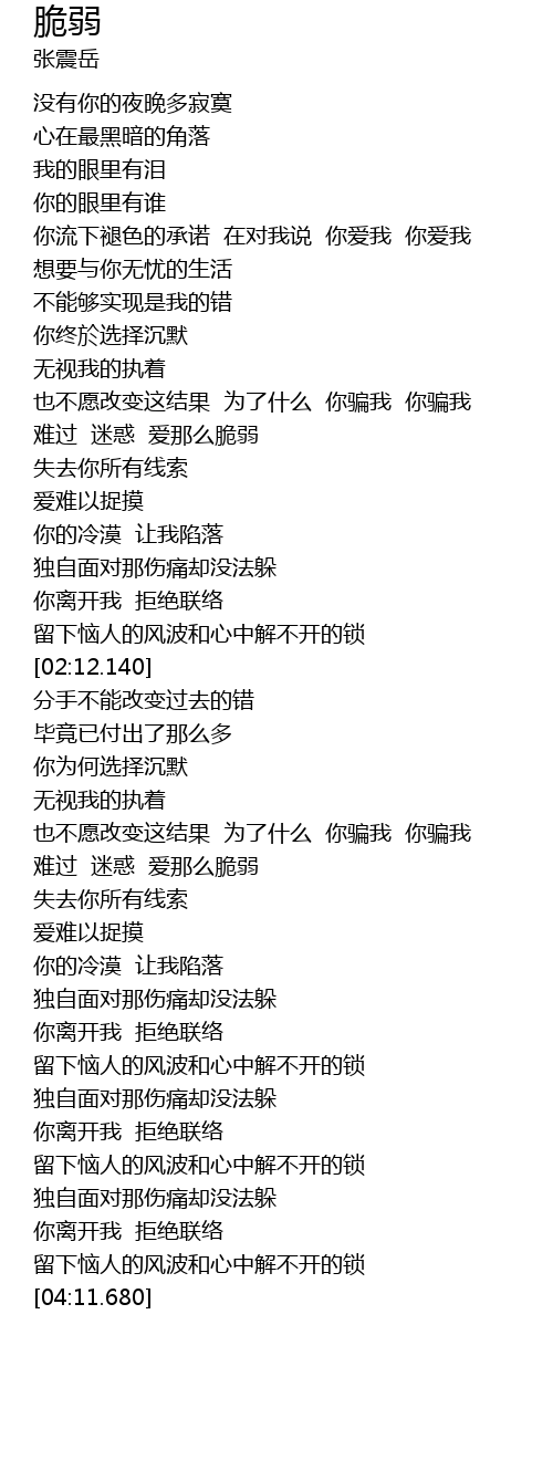 | [03:10.690] | 难过 迷惑 爱那么脆弱 |
