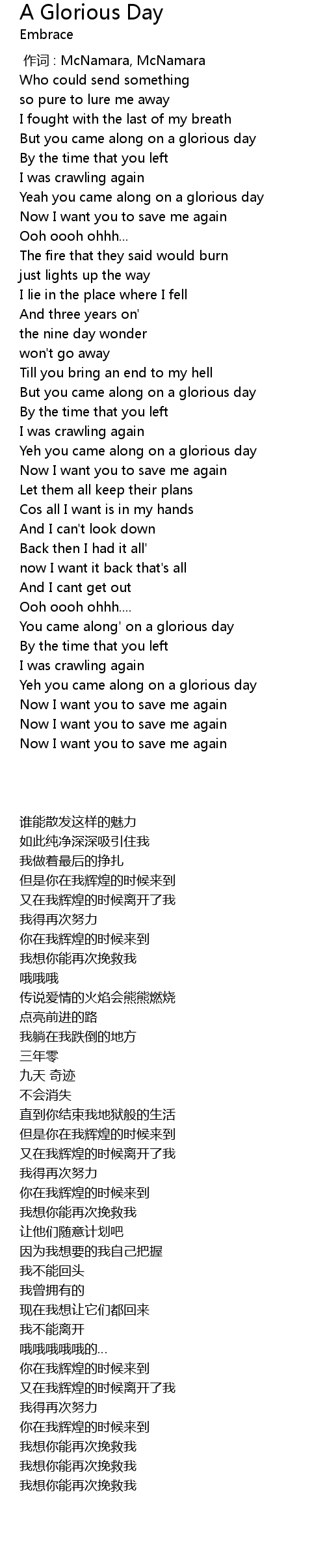 | [00:25.470] | But you came along on a glorious day |