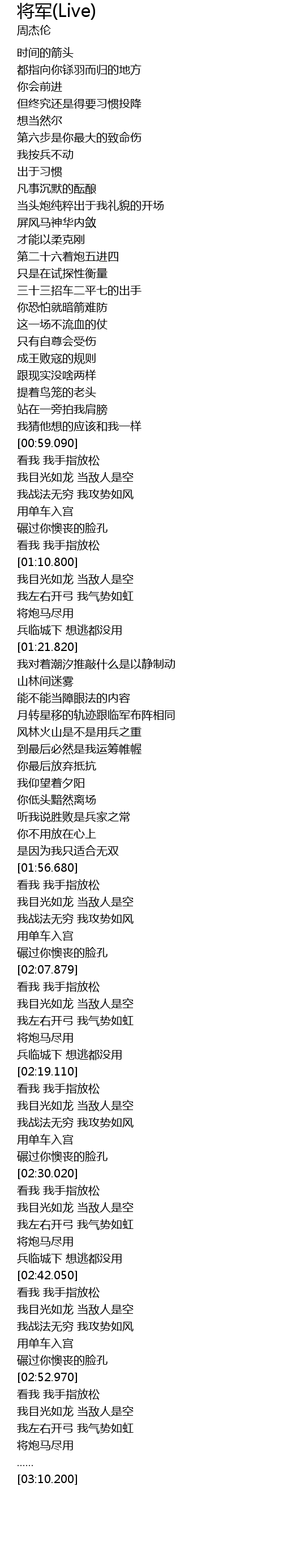 | [02:01.589] | 我战法无穷 我攻势如风 |