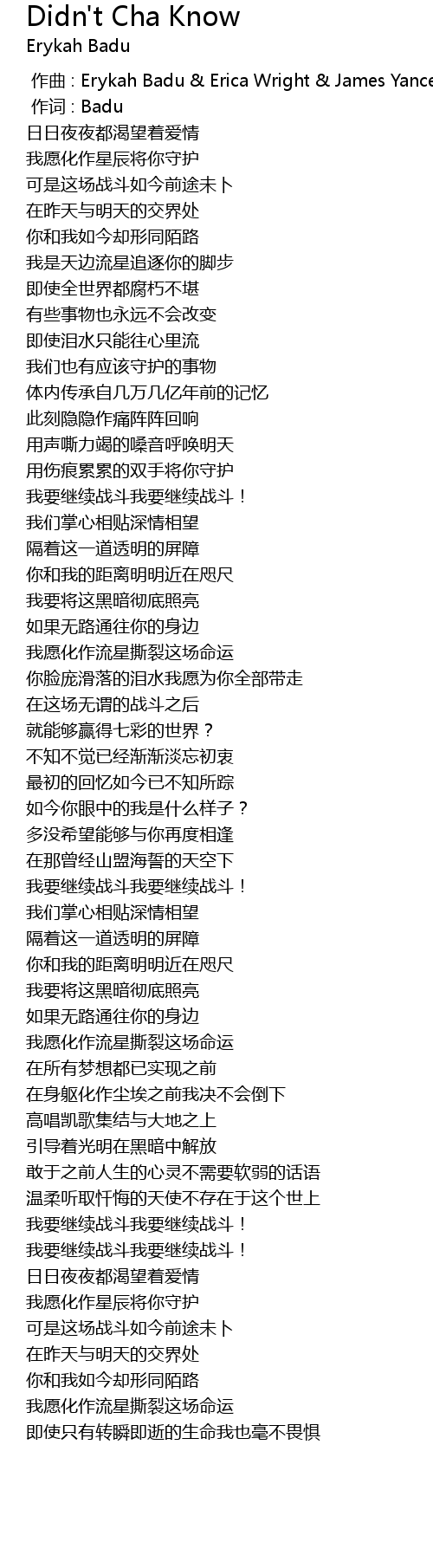 | 歌曲 | Didn't Cha Know |