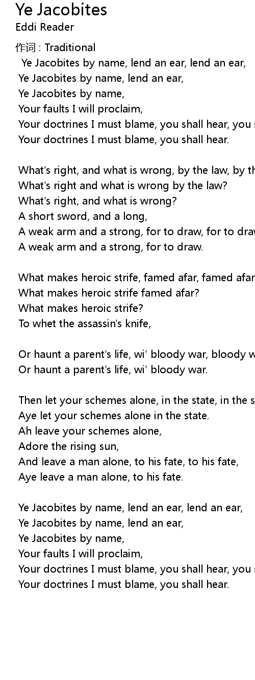 | Ye Jacobites by name, lend an ear, lend an ear, | |