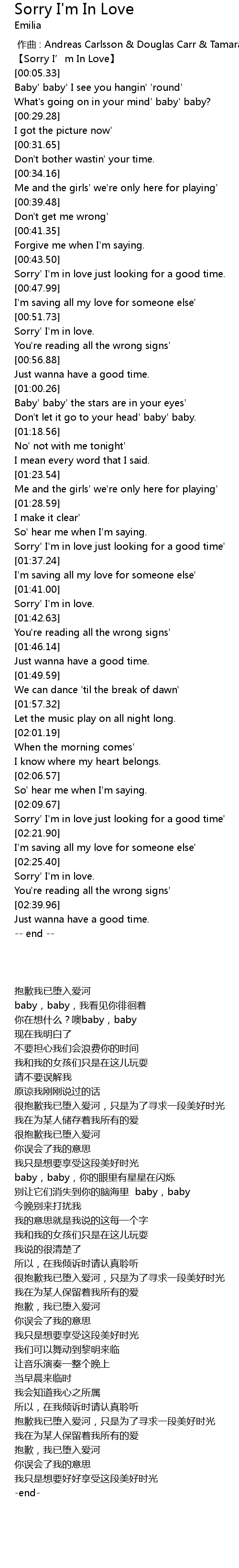 | [01:33.23] | Sorry' I' m in love just looking for a good time' |