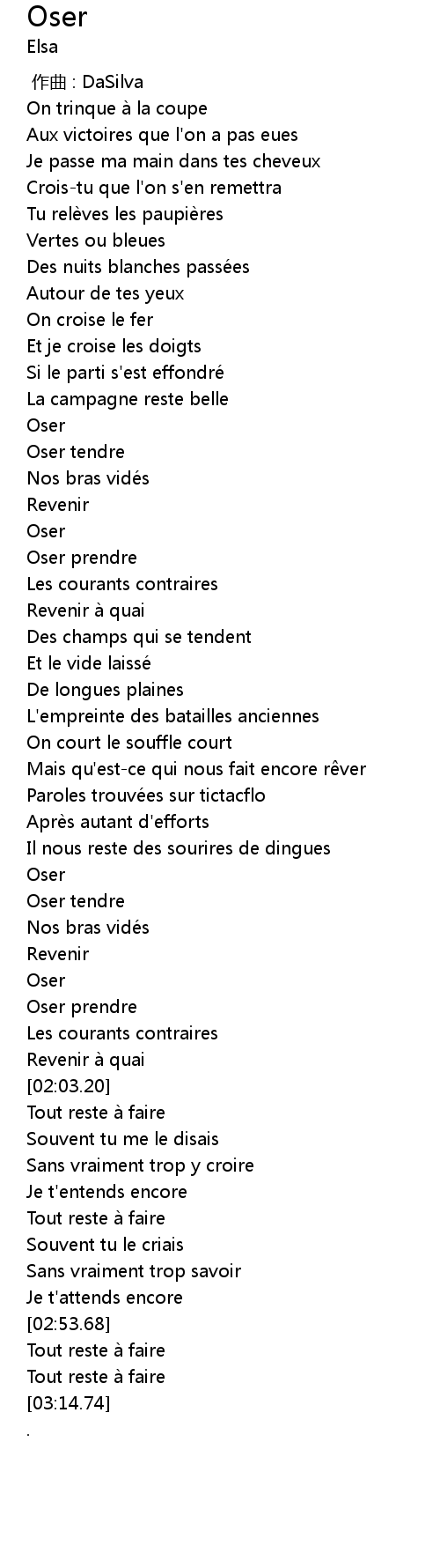 | [01:39.83] | Oser tendre |