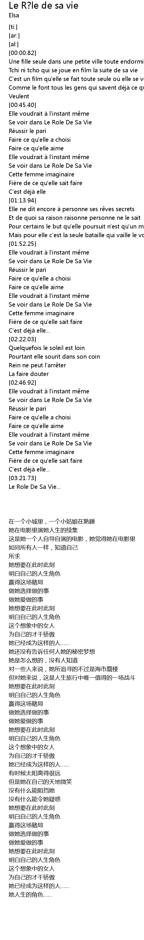 | [03:21.99] | 她人生的角色…… |