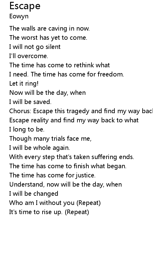 | Chorus: Escape this tragedy and find my way back to your arms again. | |