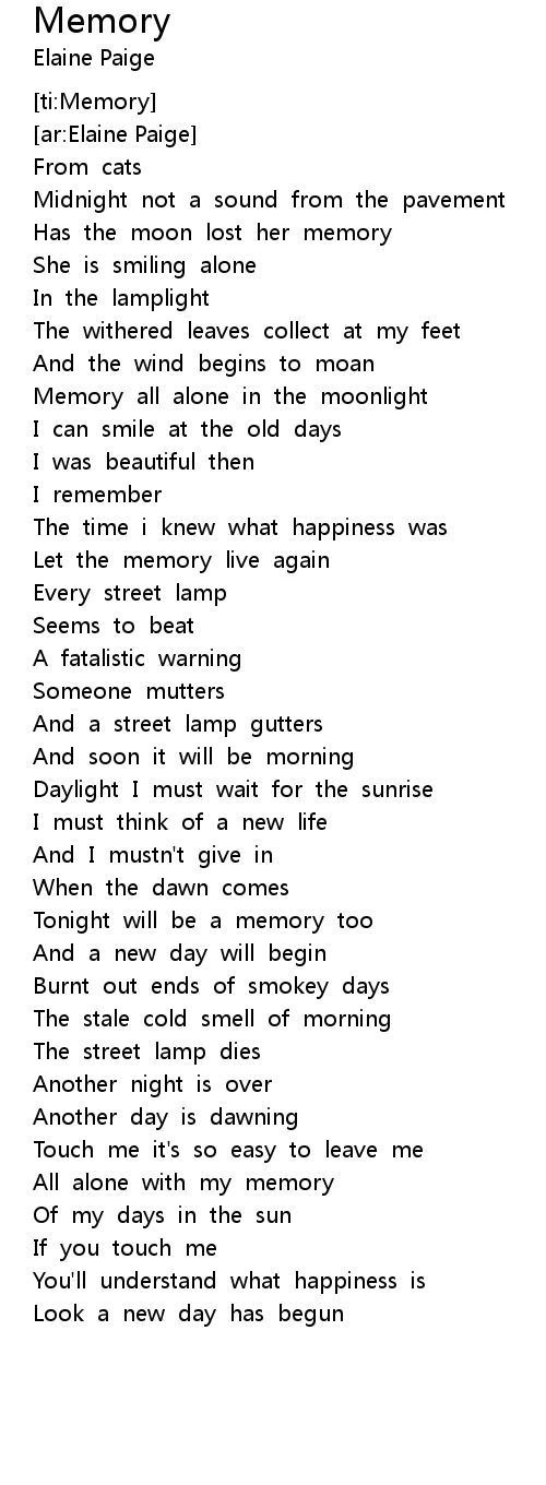 Memory all alone in the moonlight |