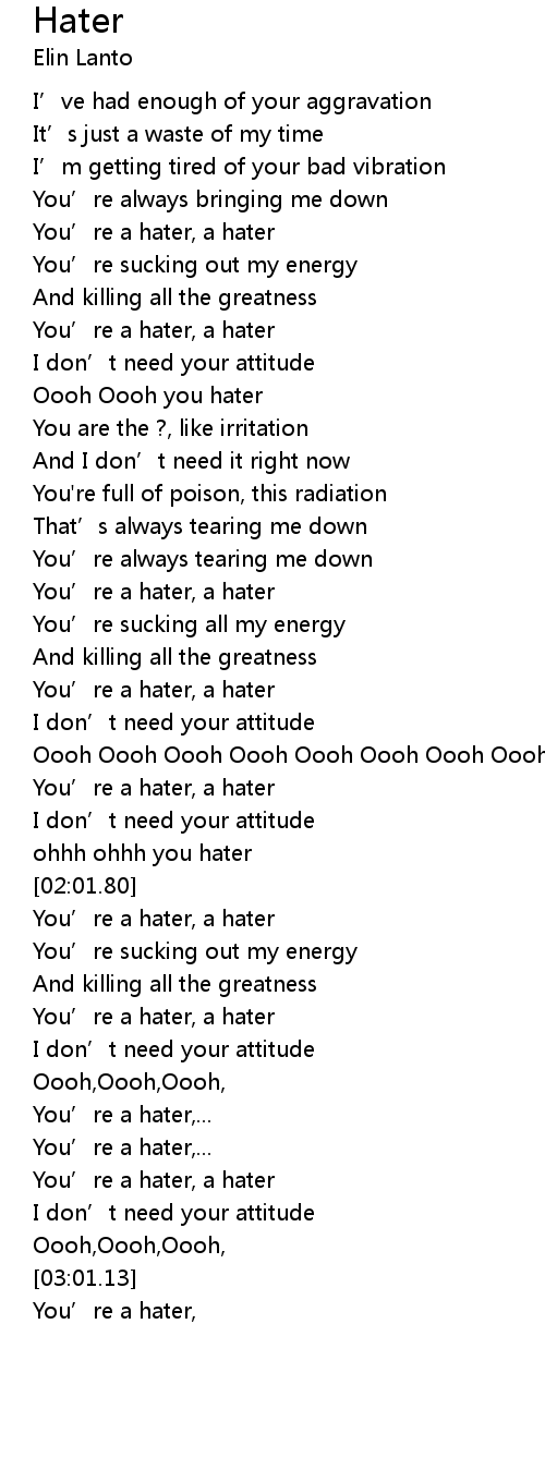 | [00:40.10] | You' re a hater, a hater |