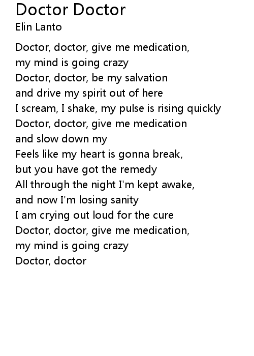 | Doctor, doctor, give me medication, | |