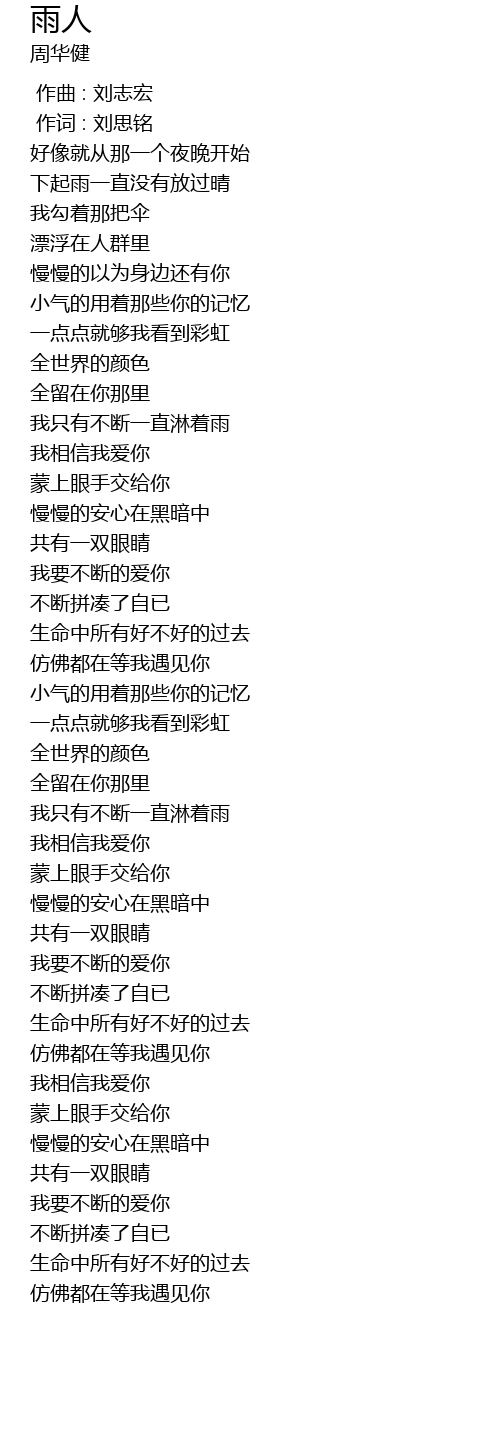 | [00:01.00] | 作词 : 刘思铭 |
