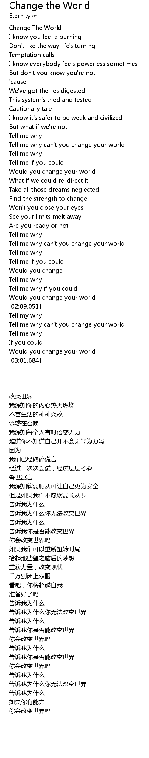 Tell me why can't you change your world |