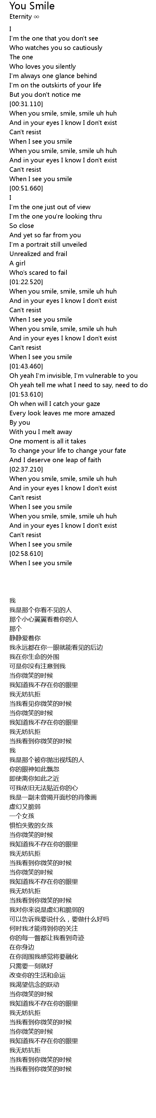 | [00:31.510] | When you smile, smile, smile uh huh |