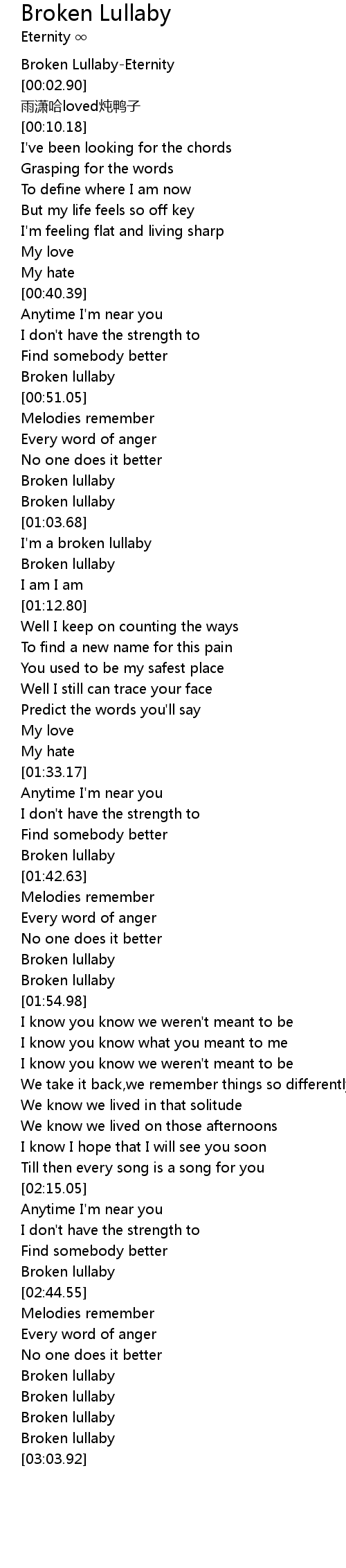 | [02:41.94] | Broken lullaby |