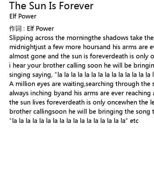 | 歌曲 | The Sun Is Forever |