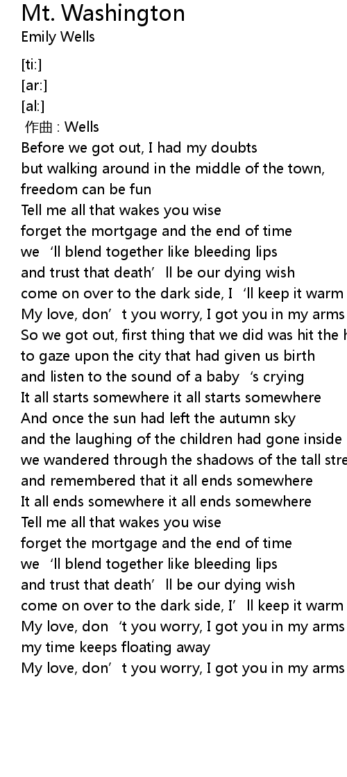 | [00:55.29] | My love, don’t you worry, I got you in my arms |